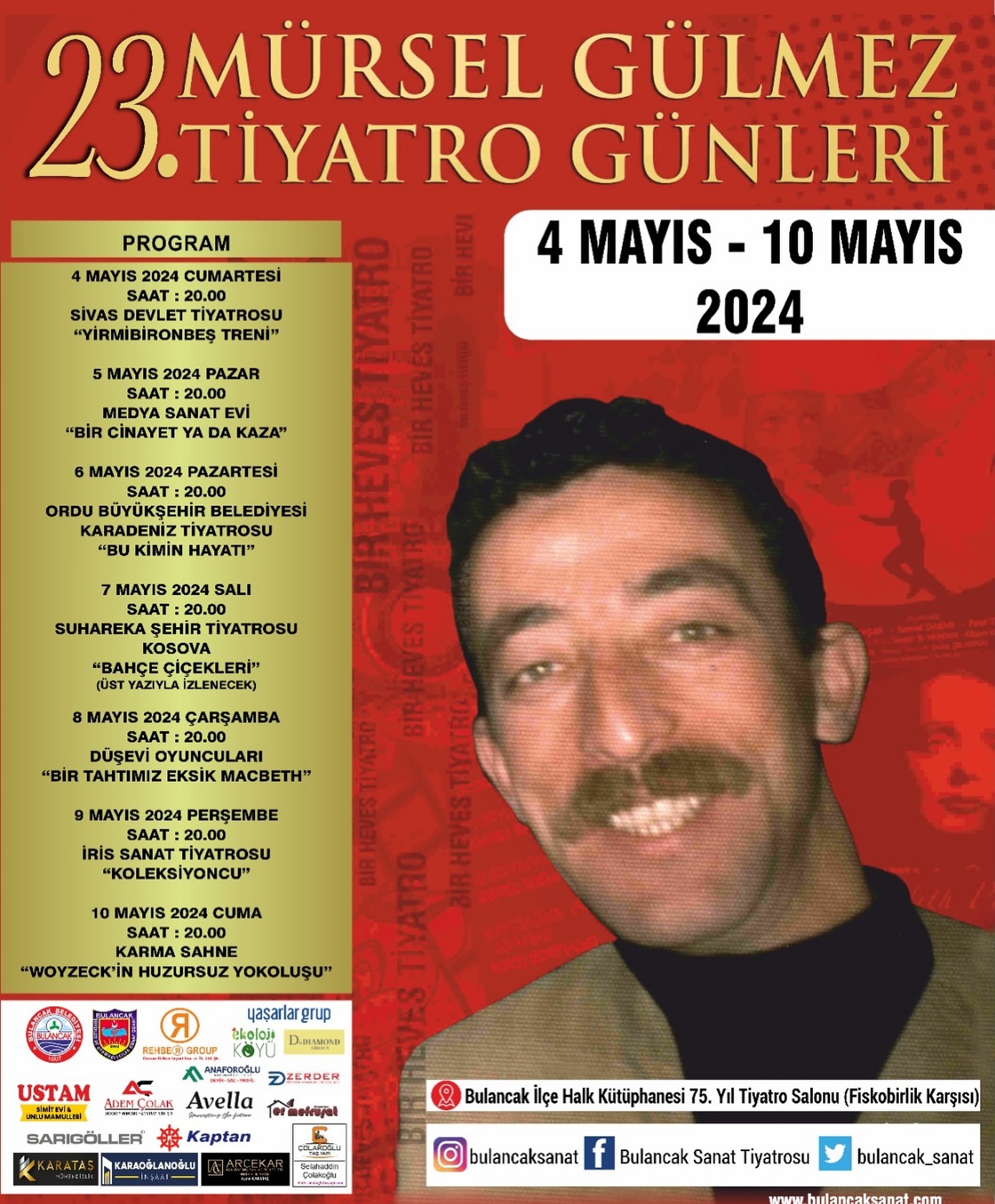 23. Mürsel Gülmez Tiyatro Günleri, bu yıl 4-10 Mayıs tarihlerinde, Bulancak 75. Yıl Tiyatro Salonu’nda seyircilerine kapılarını açacak.
