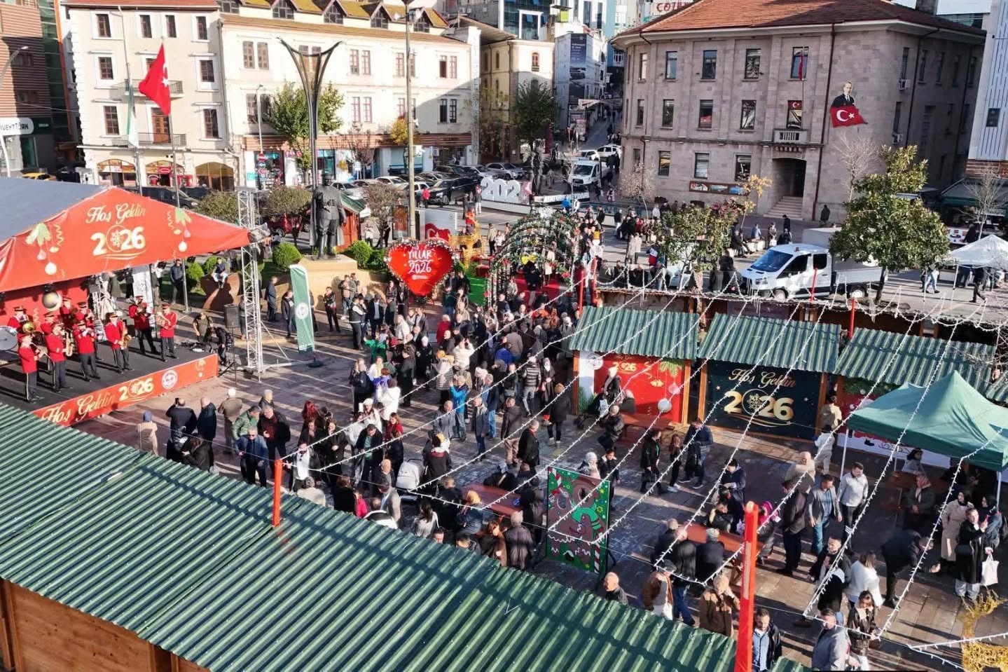 Atatürk Meydanı, kentin ilk kapsamlı Yeni Yıl Çarşısı için baştan aşağı ışıklandırılarak büyülü bir görünüme büründü. Renkli dekorlar, özel süslemeler ve ışıl ışıl atmosferiyle meydan, daha ilk günden büyük ilgi topladı.