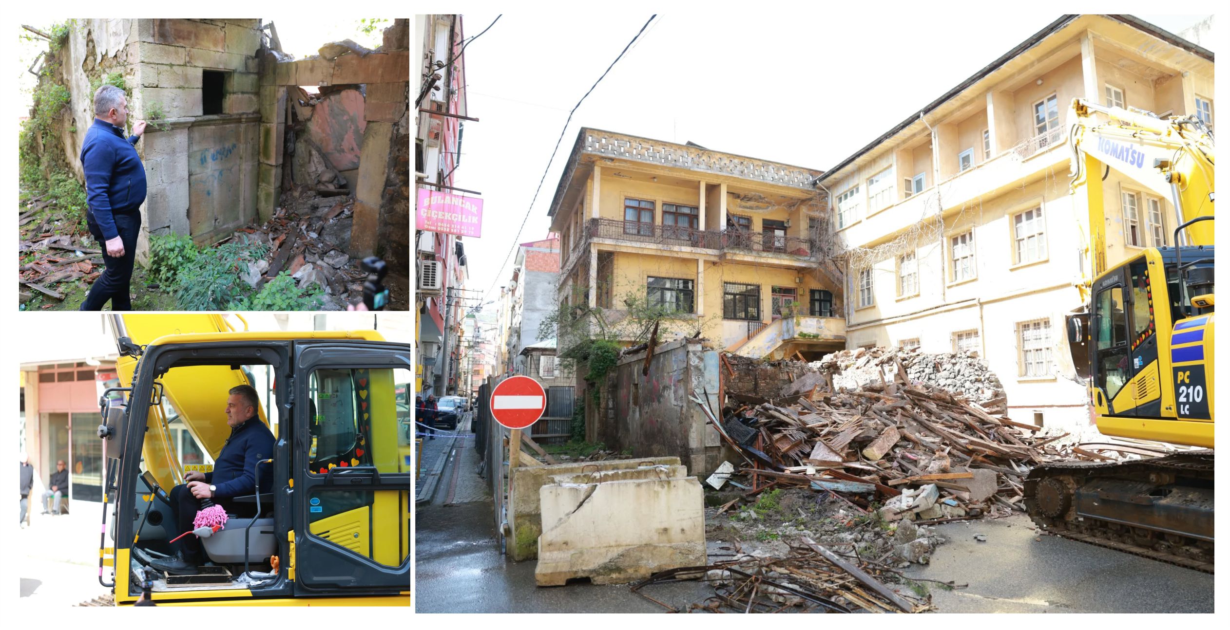 Bulancak Belediye Başkanı Necmi Sıbıç da yıkım çalışmalarının başında yer aldı. Sahada ekiplerle birlikte süreci yakından takip eden Sıbıç, hem vatandaşlarla hem de esnafla görüşerek sürece dair bilgi verdi.