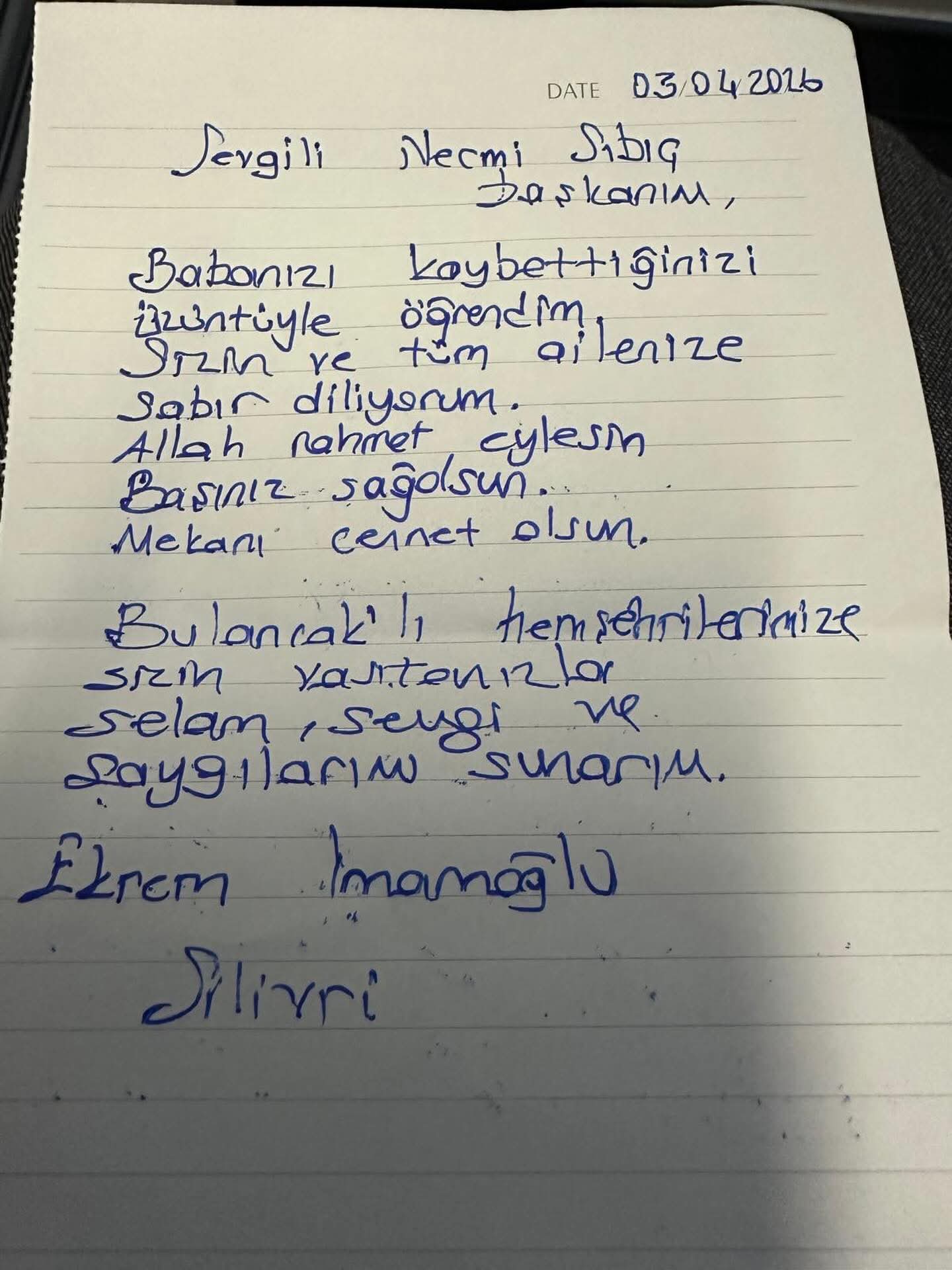 Cumhurbaşkanı adayı Ekrem İmamoğlu’nun kaleminden dökülen o cümleler; yalnızca bir başsağlığı değil, bir kalbin diğerine dokunuşuydu.